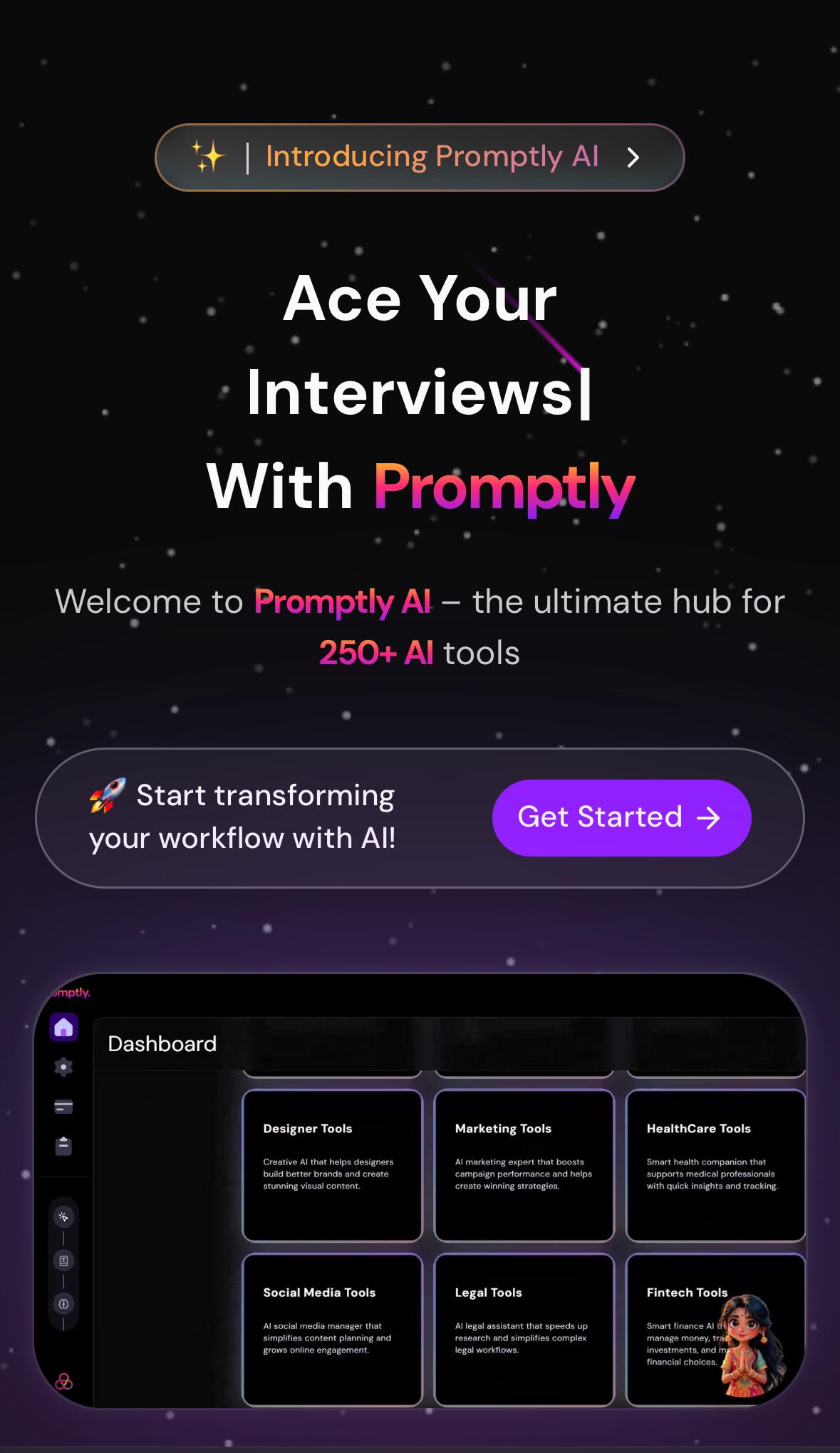 Welcome to Promptly AI! 👋 Your all-in-one platform with 300+ AI tools for content creation, code generation, image editing, video production, and more. Let's bring your ideas to life—what would you like to create today?